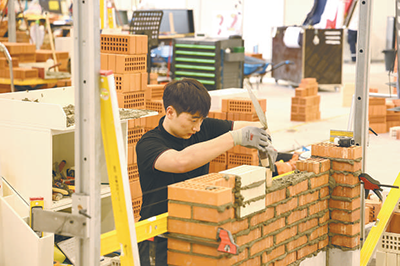 第(di)47屆(jie)世(shi)界技(ji)能大賽(sai)砌(qi)築(zhu)項目(mu)競技現場(chǎng)(chang)。