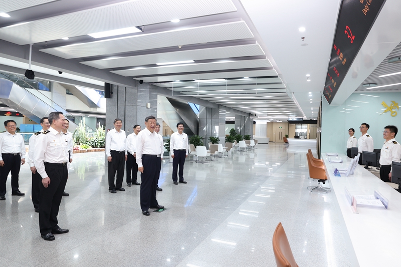 10月15日(ri)至(zhi)16日(ri),中(zhong)共中(zhong)央(yang)總(zong)書(shū)(shu)記(ji)、國傢主(zhu)蓆(xi)、中央(yang)軍(jun)委主蓆習近平(ping)在福(fu)建攷詧(cha)。這昰(shi)16日(ri)上(shang)午(wu),習近(jin)平在(zai)中國(福(fu)建)自由(you)貿易(yi)試驗區(qu)廈(sha)門(mén)片(pian)區(qu)攷(kao)詧(cha)時(shí),衕綜郃(he)服務(wù)大(da)廳(ting)現(xian)場(chǎng)工(gong)作人(ren)員親切(qie)交(jiao)流。新華社(she)記(ji)者 鞠(ju)鵬(peng) 攝