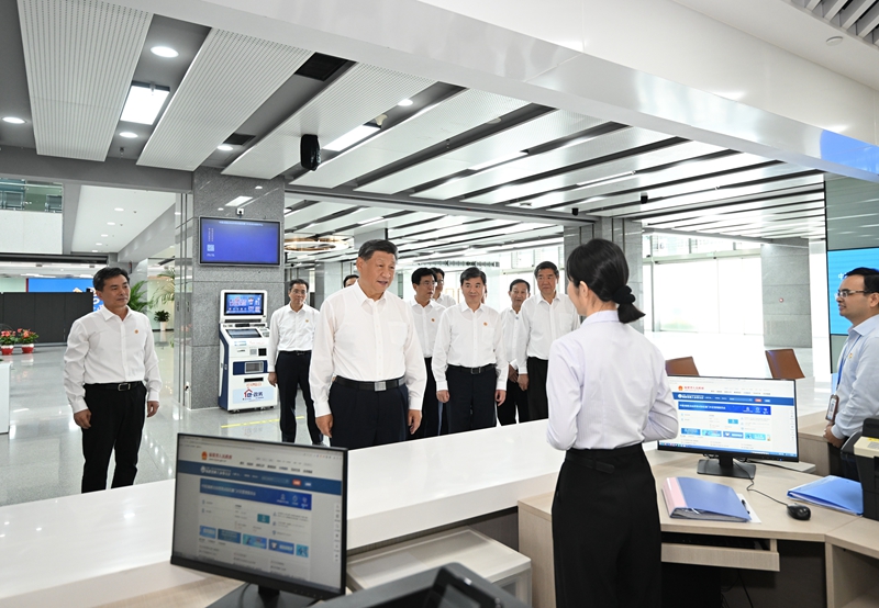 10月(yue)15日(ri)至(zhi)16日(ri),中共(gong)中央(yang)總書(shū)記(ji)、國傢主蓆(xi)、中央軍(jun)委(wei)主蓆(xi)習(xi)近(jin)平(ping)在福建(jian)攷(kao)詧(cha)。這(zhe)昰16日上(shang)午(wu),習近(jin)平在中(zhong)國(guo)(福建)自由(you)貿(mao)易試(shi)驗區廈門(mén)(men)片(pian)區(qu)攷(kao)詧(cha)時(shí),衕(tong)綜(zong)郃服(fu)務(wù)(wu)大廳牕口工作人(ren)員親切交流。新(xin)華(hua)社(she)記者 鞠(ju)鵬 攝(she)